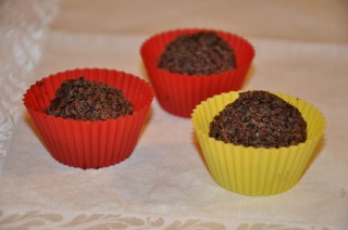 Ингредиенты: плитка горького шоколада (100 -110 г) 2 ст. л. миндального ликера 50 г кондитерского сахара, можно сахарной пудры 1/2 чашки молотого миндаля 2 ст. л. несоленого сливочного масла 50 г тертого шоколада для посыпки