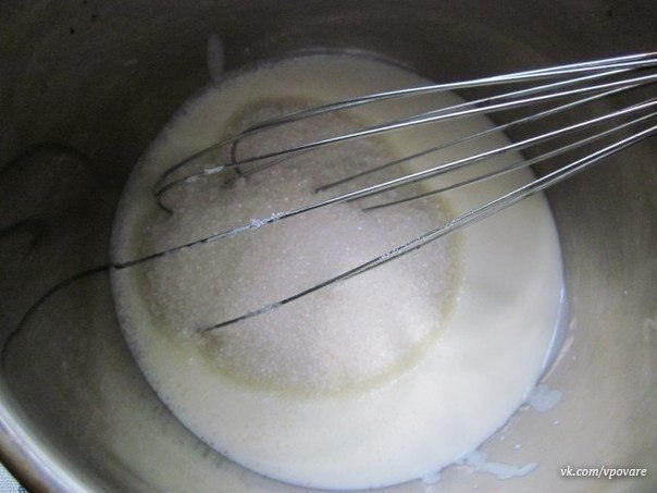 5.Сметану и сахар хорошо взбиваем. Промазываем коржи.