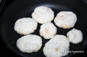 3. Сформировать «котлетки», приплюснуть их. Чтобы не липли к рукам – смачивайте руки холодной водой. Можно обвалять в муке (я не обваливаю).